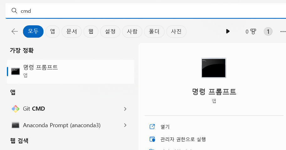 1. cmd 창을 관리자 권한으로 열기