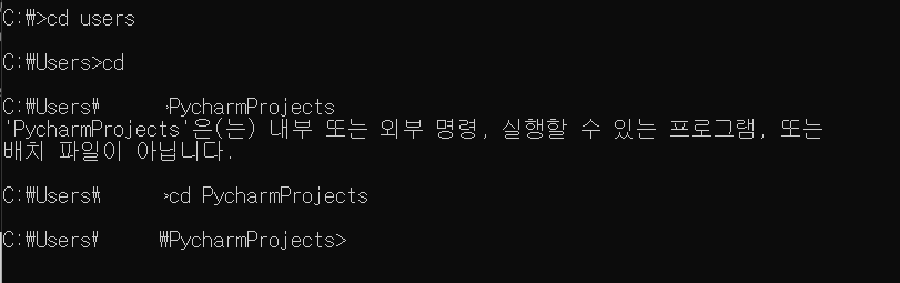 2. pycharm projects 폴더로 이동