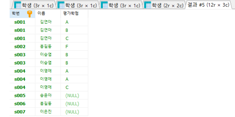 FROM 학생 LEFT OUTER JOIN 수강 ON 학생.학번 = 수강.학번
