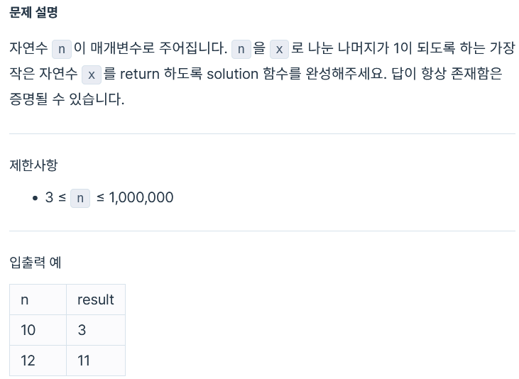[프로그래머스] 나머지가 1이 되는 수 찾기