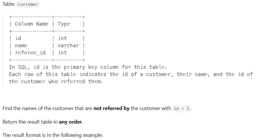 [LeetCode/MySQL50] 584. Find Customer Referee