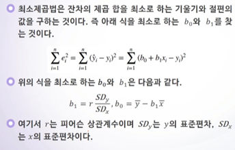 잔차를 최소화하는 방법으로 최소 제곱법이 있음.