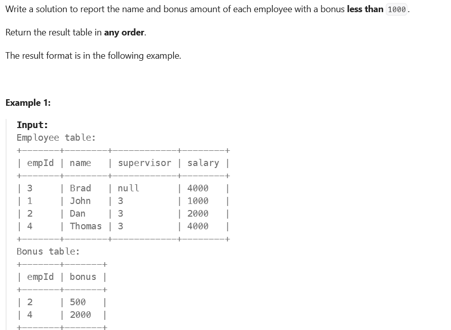 [LeetCode/MySQL50] 577. Employee Bonus