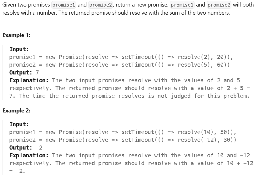 return Promise.all([promise1, promise2]).then(([val1, val2]) => val1 + val2);